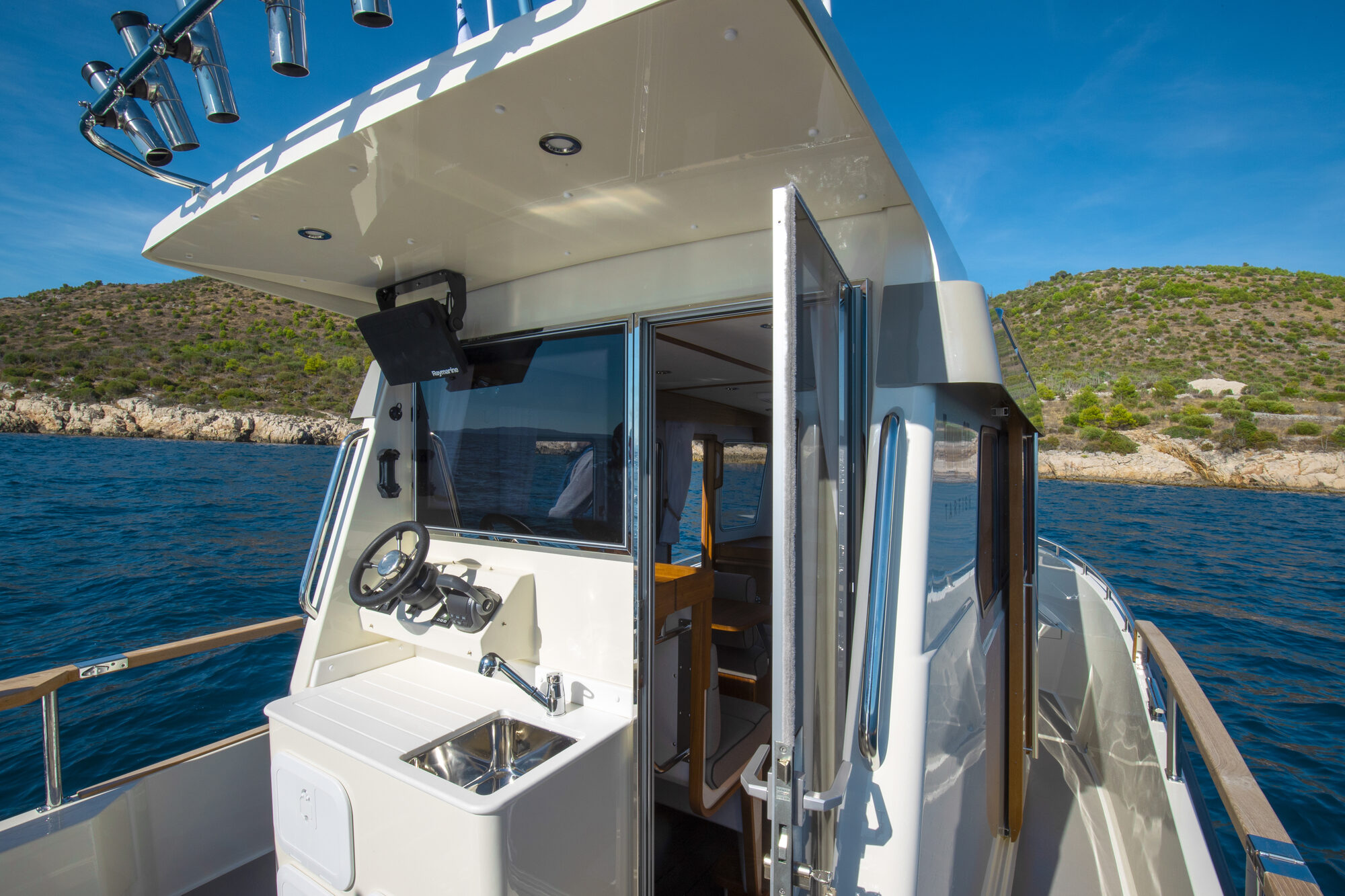 The Tarfish range is designed for recreational fishing and day trips. Each model in the range comes with a door from the pilothouse to the large aft deck and fish tank(s) on the aft deck.